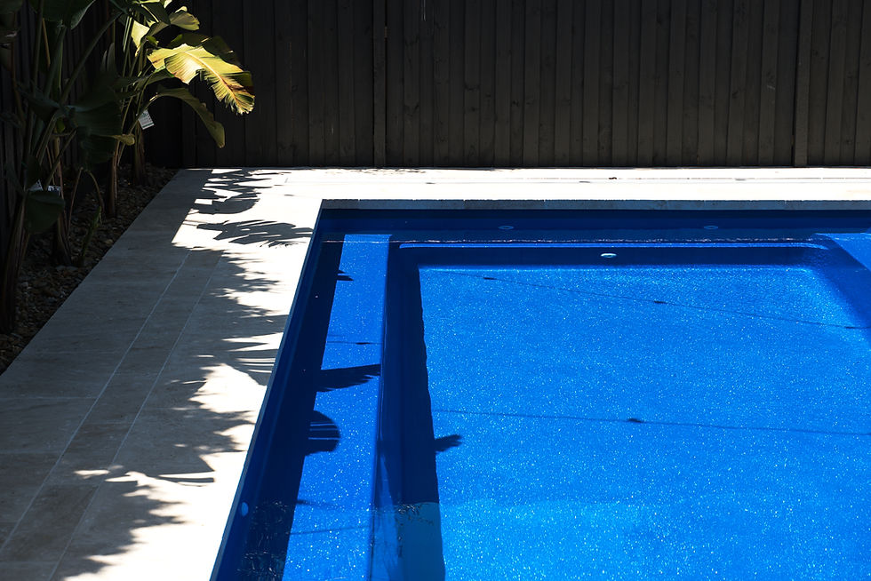 The Flinders Pool Range by Summertime Pools is the ultimate solution for active families seeking a pool that offers both ample space and thoughtful features. Available in three sizes to fit diverse backyard layouts, the Flinders provides options that range from a compact 5m model with dimensions of 5.3m in length, 3.0m in width, and a depth from 1.12m to 1.65m, to larger models measuring 7m (7.3m length x 3.9m width x 1.20m - 1.75m depth) and 8m (8.3m length x 3.9m width x 1.11m - 1.75m depth). Each of these sizes offers a spacious swimming area that can comfortably accommodate multiple family members, creating a fun, active space for kids while allowing adults to unwind undisturbed.