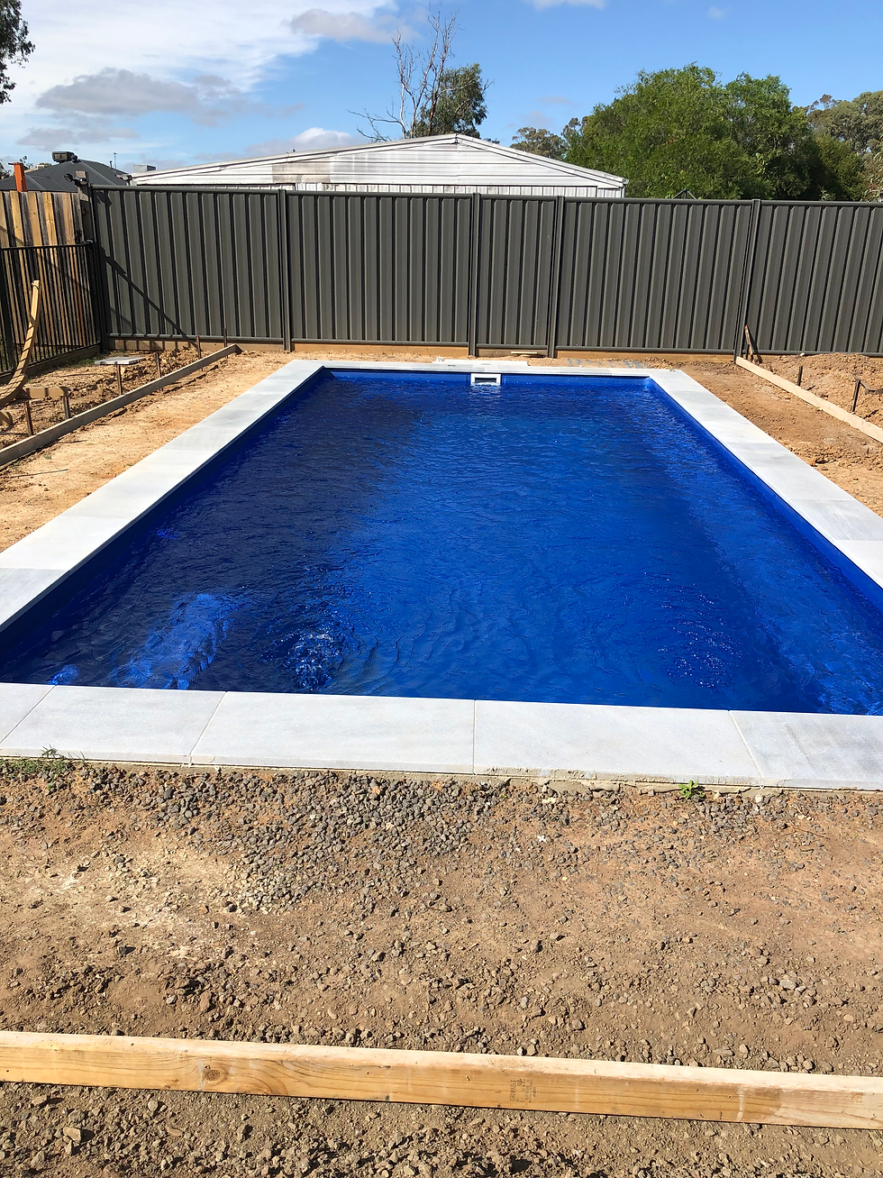 One of the key features of the Flinders Range is its practical, family-friendly design that balances functionality with comfort. A long bench seat runs along one side of the pool, offering a perfect place for adults to sit and relax, or for family members to gather poolside. This bench layout is complemented by easy-access steps, which provide safe entry and exit for swimmers of all ages, making the Flinders ideal for families with young children or those looking for effortless access. This thoughtful configuration ensures that all members of the family, from the youngest to the oldest, can enjoy the pool with ease and confidence.