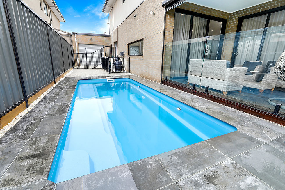 One of the standout features of the Taigen is its thoughtfully designed layout, anchored by a spacious bench seat running down one side of the pool. This long bench provides ample seating for relaxing poolside with family and friends, while its placement maximises the swim area, making it perfect for lounging as well as more active pursuits. In addition to its bench, a strategically placed set of entry steps allows for easy access into the pool, making it convenient and safe for swimmers of all ages.